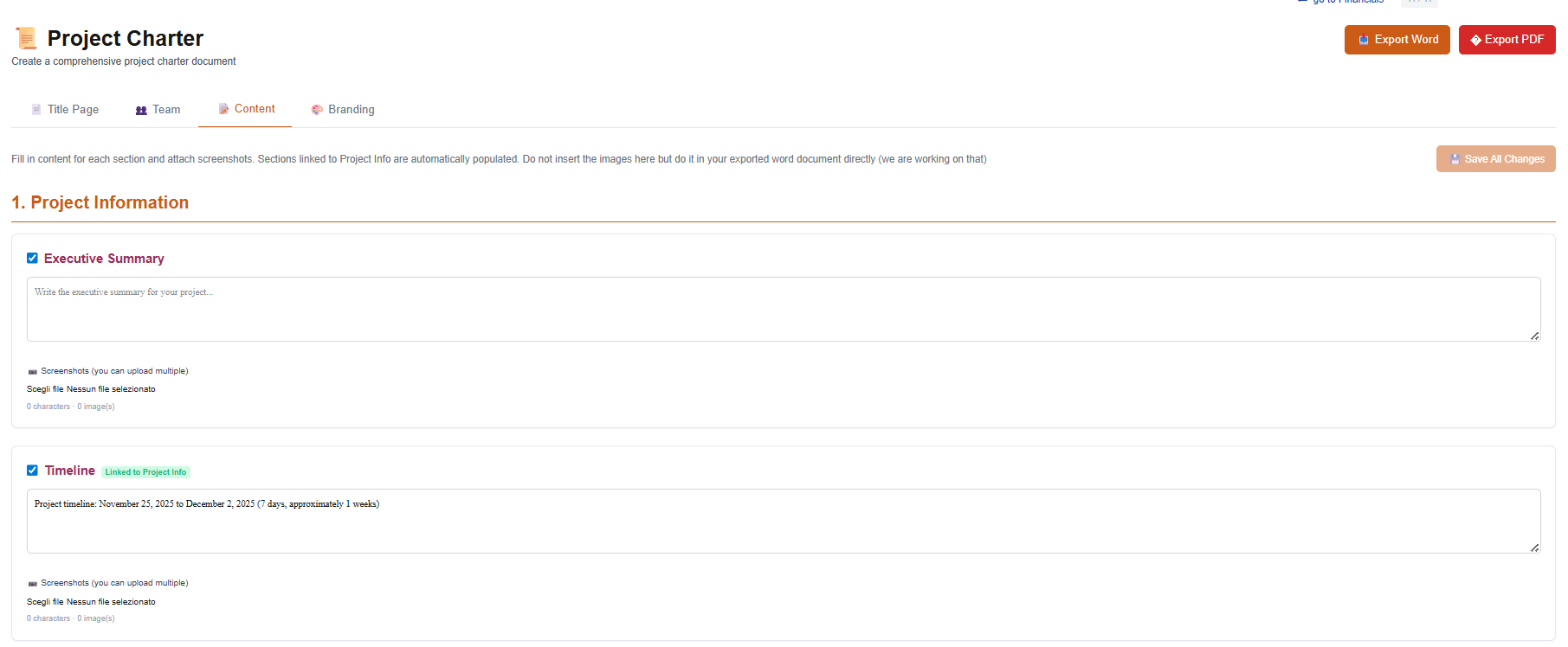 Start with preliminary planning if you want, and compile the project charter. Or, proceed to the advanced planning to create a full Project Management Plan.